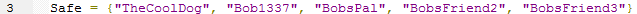 Then inside the "frez446436" script you need to edit the safe table(list) and add you and your friends name in.